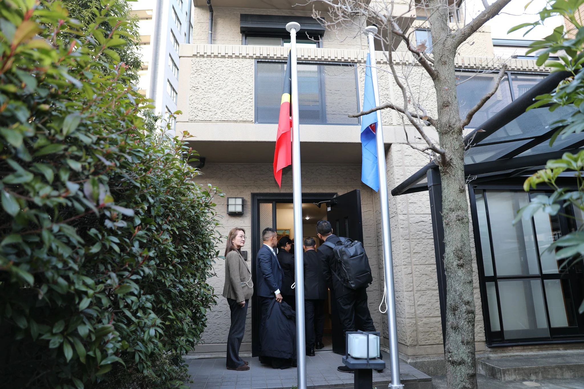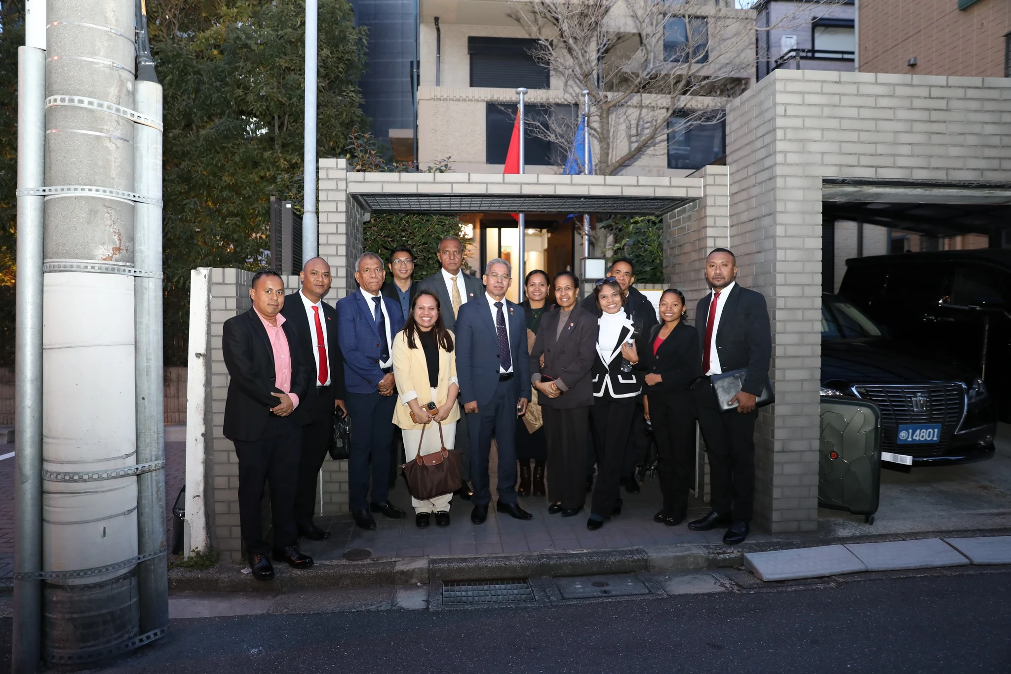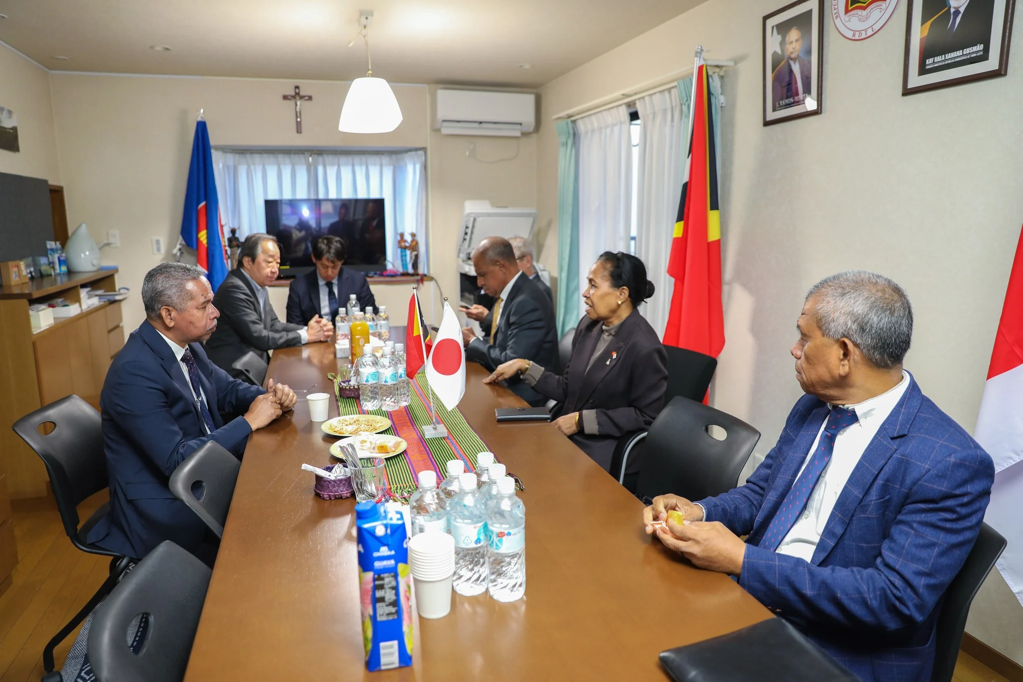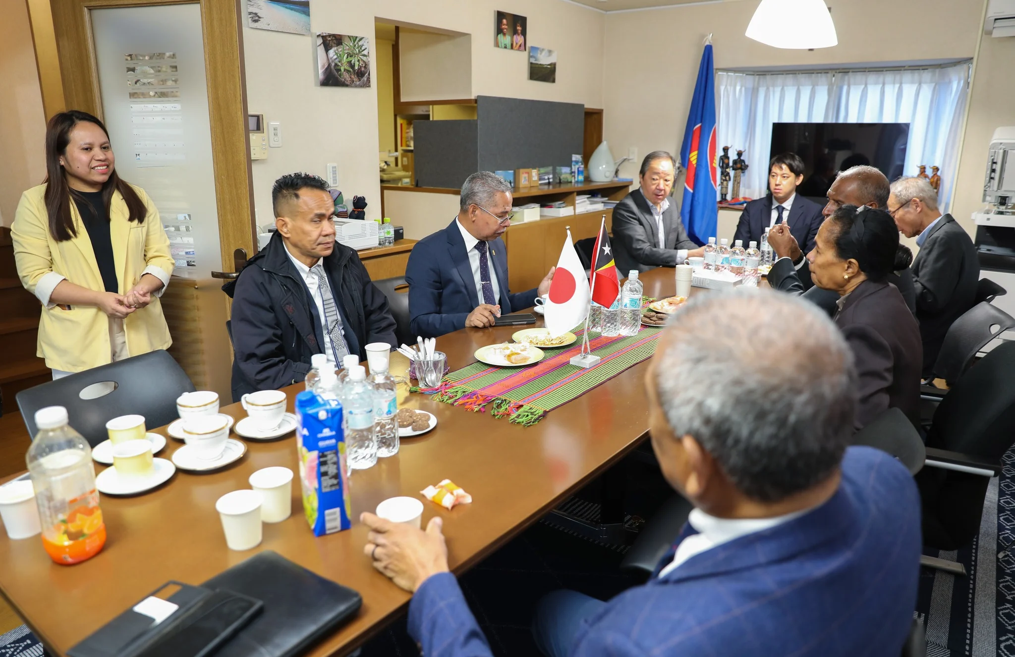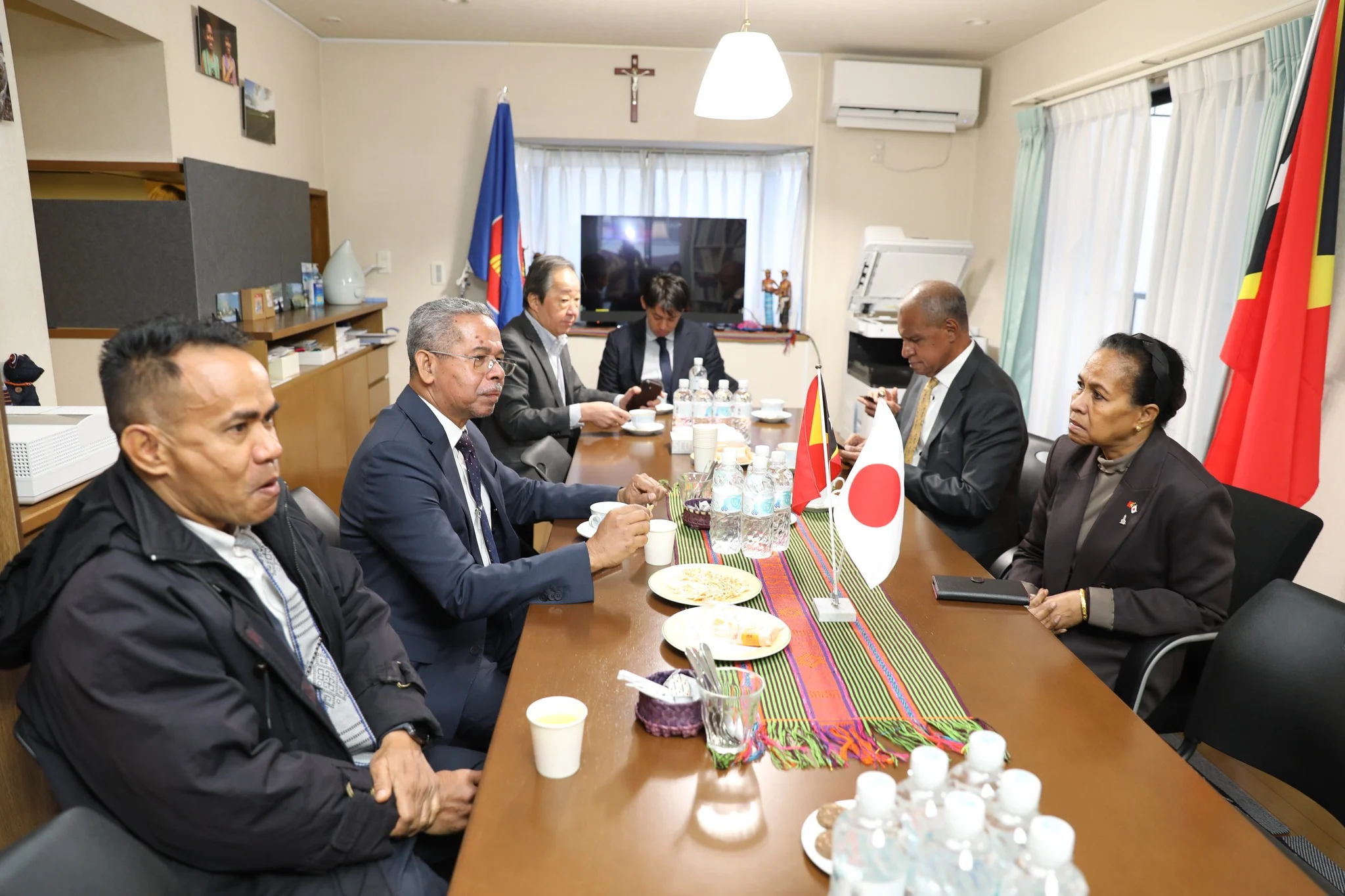 O Ministro Manetelu e a sua delegação foram recebidos pela Embaixadora de Timor-Leste no Japão, S.E. Maria Terezinha da Silva Viegas, acompanhada pelo Conselheiro Célio Moniz e pela Técnica Administrativa e Financeira Faviola Henriques da Cruz.